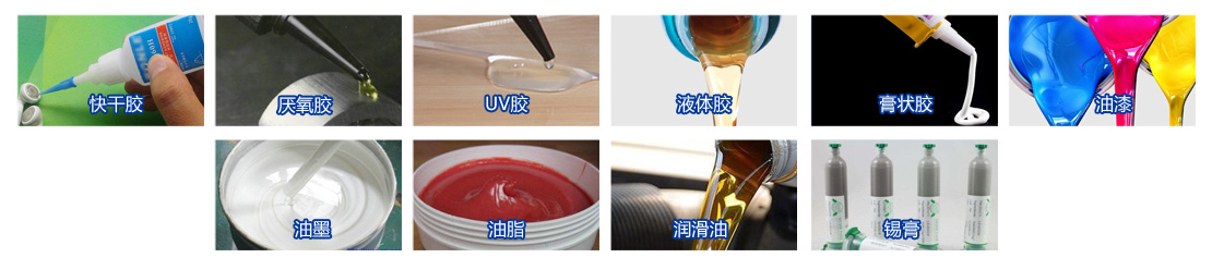 常用胶水特性:快干胶、厌氧胶、UV胶、液体胶、膏状胶、油漆、油墨、油脂、润滑油、锡膏等。 | |||