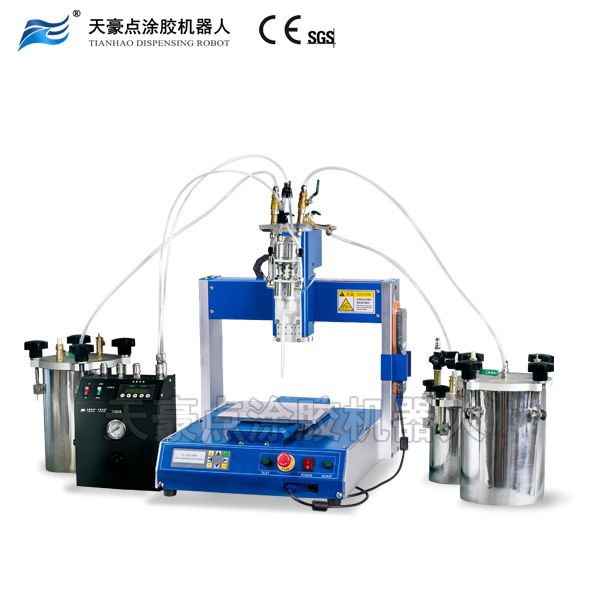 适用于中低粘度(低于10000cps)AB胶1:1—1:3之间自动定量混合的产品精密点涂胶工艺需求,并配备自动清洗装置。 常用胶水包装:桶装等。 | |||
