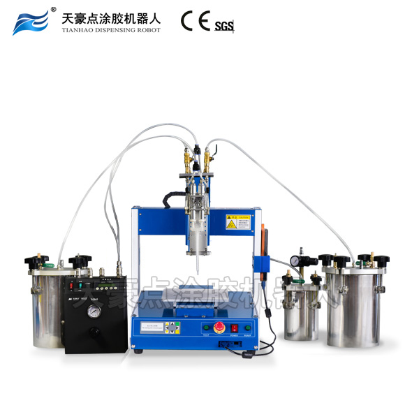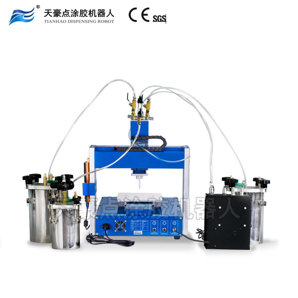 适用于中低粘度(低于10000cps)AB胶1:1—1:3之间自动定量混合的产品精密点涂胶工艺需求,并配备自动清洗装置。 常用胶水包装:桶装等。 | |||